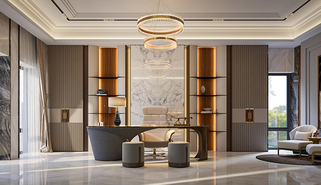 We provide complete design solutions, including ceiling treatments, lighting schemes, flooring, and wall finishes, complemented by artistic installations and carefully selected furnishings.