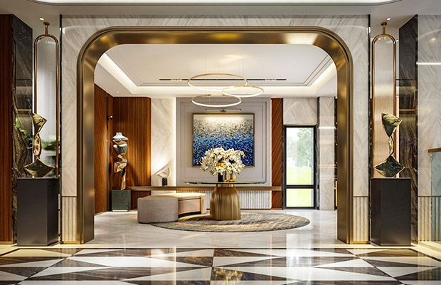 We offer comprehensive entrance design solutions, including patterned flooring, wall treatments, and lighting design, to create a space that exudes both ceremony and warmth. Every detail marks the beginning of life inside and reflects the homeowner’s refined taste.
