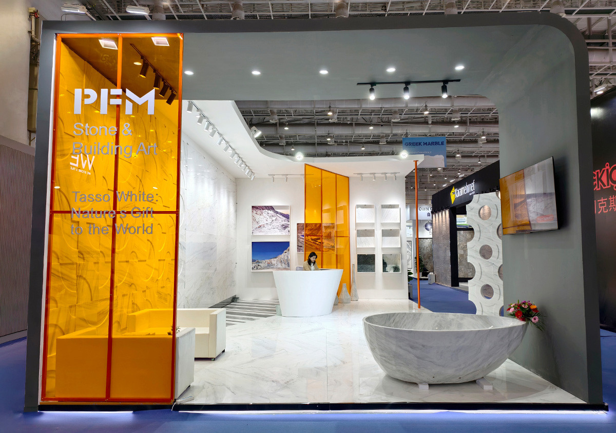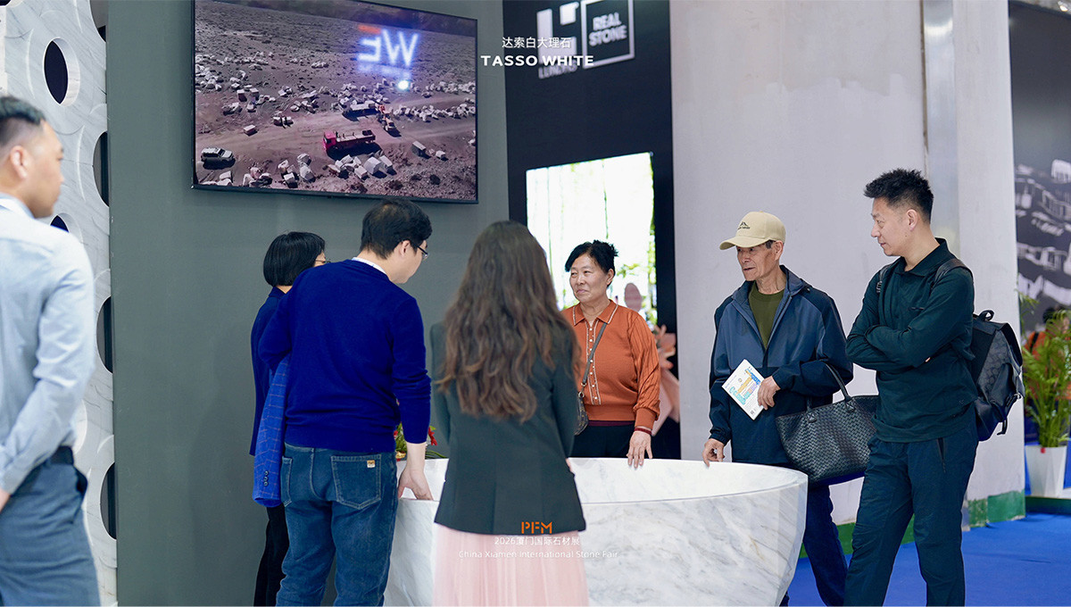 PFM Tasso White Marble Shines at Xiamen Stone Fair, Drawing Global Attention