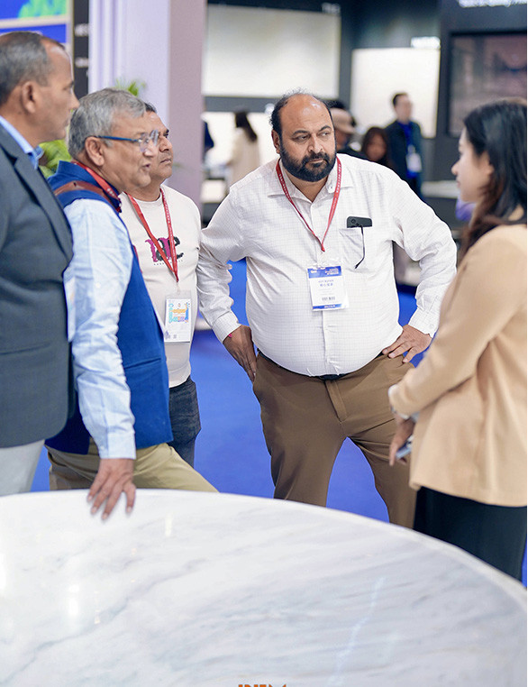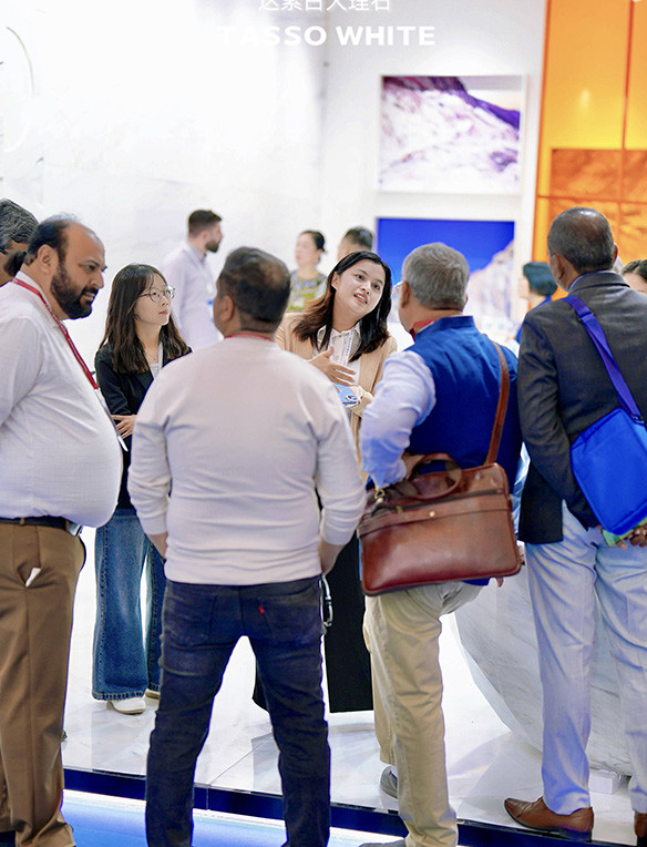 On the opening day, professionals from across the global stone industry—including architects, designers, and distributors—visited the PFM booth for discussions and exchanges. The atmosphere was vibrant, with many industry experts expressing strong interest in Tasso White Marble for applications in luxury residences, hotels, and large public architectural spaces.