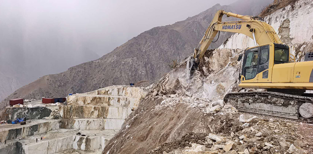 At an altitude of over 4,000 meters on the Pamir Plateau stands the Tasso White marble quarry in Tajikistan.
