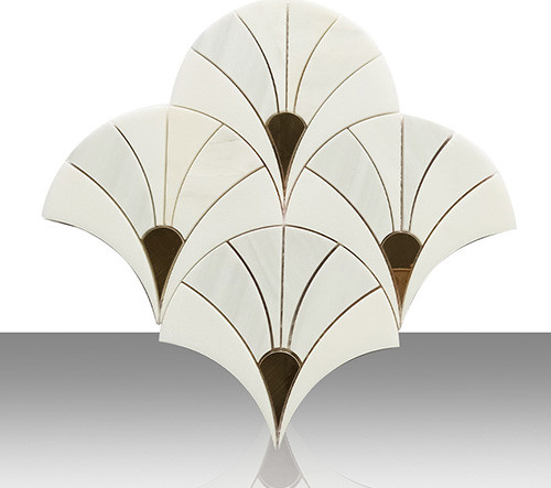 Home / All / Milano White Marble / Milano White Mosaic Tiles / Art Deco Fan Shape Milano White Marble Mosaic Tile with Brass Inlay Waterjet Wall Tile for Villa Interior