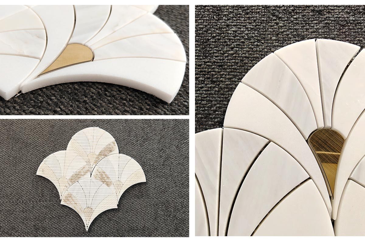 The Resonance of Stone and Gold: PFM Milano White Fan-Shaped Waterjet Mosaic
