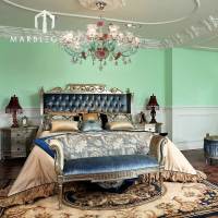 Manufacture price royal blue king bed bedroom design solid wooden luxury villa furniture set